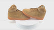 Outfitted for kids, the Nike Air Force 1 High LV8 GS sneaker recrafts the’82 hardwood classic with premium materials and a neutral colorway. Styled for growing feet, the 'Flax' edition takes a monochrome approach to the premium nubuck and synthetic upper, featuring a wheat-colored hue from heel to toe. A lace up closure with a matching Velcro ankle strap secures the high-top design, while Air-Sole cushioning in the midsole adds support.