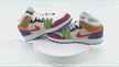 The Air Jordan 1 Mid SE GS 'Messy Room' is a playful and eclectic take on the classic AJ1, designed for grade school sizing. Released on December 4, 2022, it features a patchwork of materials and textures, including white corduroy, maroon leather, black patent, blue corduroy, and light green bubble-textured leather. A red textile Swoosh and orange-brown suede collar add vibrant contrast, while the white midsole and black rubber outsole ground the design in classic Jordan style. This whimsical mix of colors and fabrics evokes the creative chaos of a messy room, making it a standout piece for young sneaker fans